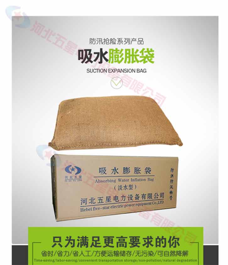 膨脹防洪袋,使用前體積小,重量輕,存放,運輸方便。與傳統的沙袋相比,在搶險防洪時大大減小時間和人力,另防洪搶險更有效率。吸水膨脹袋屬環保產品,無毒,無害,無味,無污染。可自然降解。